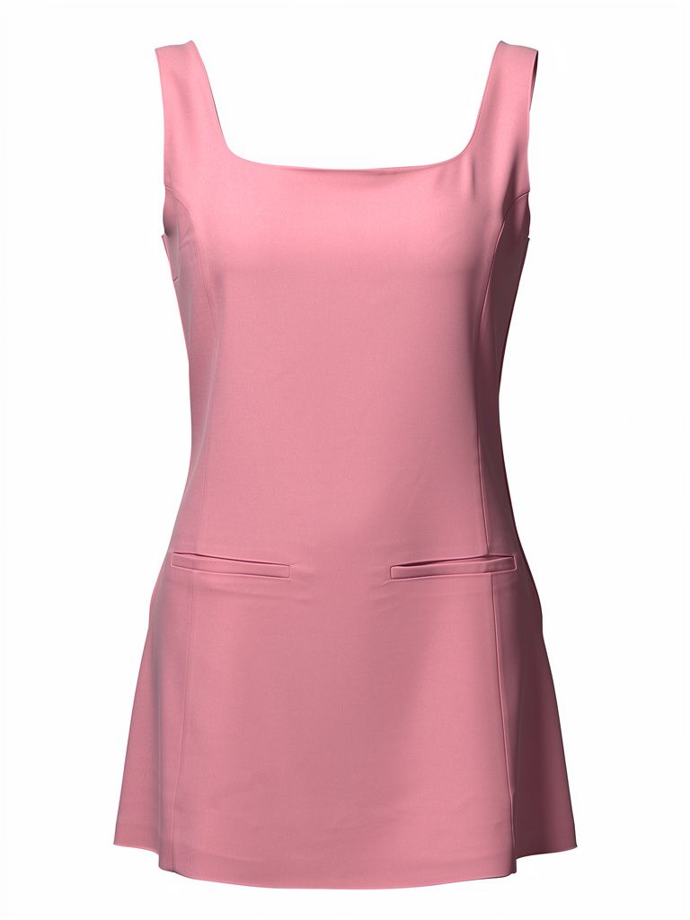 Com modelagem ajustada e caimento estruturado, o vestido mini possuí decote quadrado, que valoriza o colo. Tem forro interno, bolsos decorativos e zíper nas costas. O visual limpo da peça permite combinações versáteis.